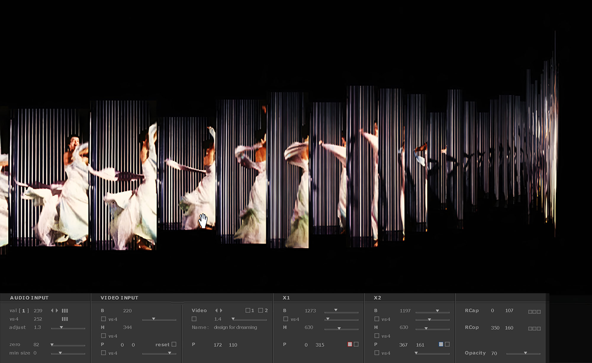 Echo Flow is an experimental video tool that creates a visual echo of any video input, revealing a short lapse of past frames layered in sequence. The effect is rendered in real time from either linked video files or live webcam input. A control panel lets users adjust the delay and shape the visual output. Audio input can also be linked to transform and position the video based on measured frequencies, creating dynamic, sound-responsive distortions and movement.