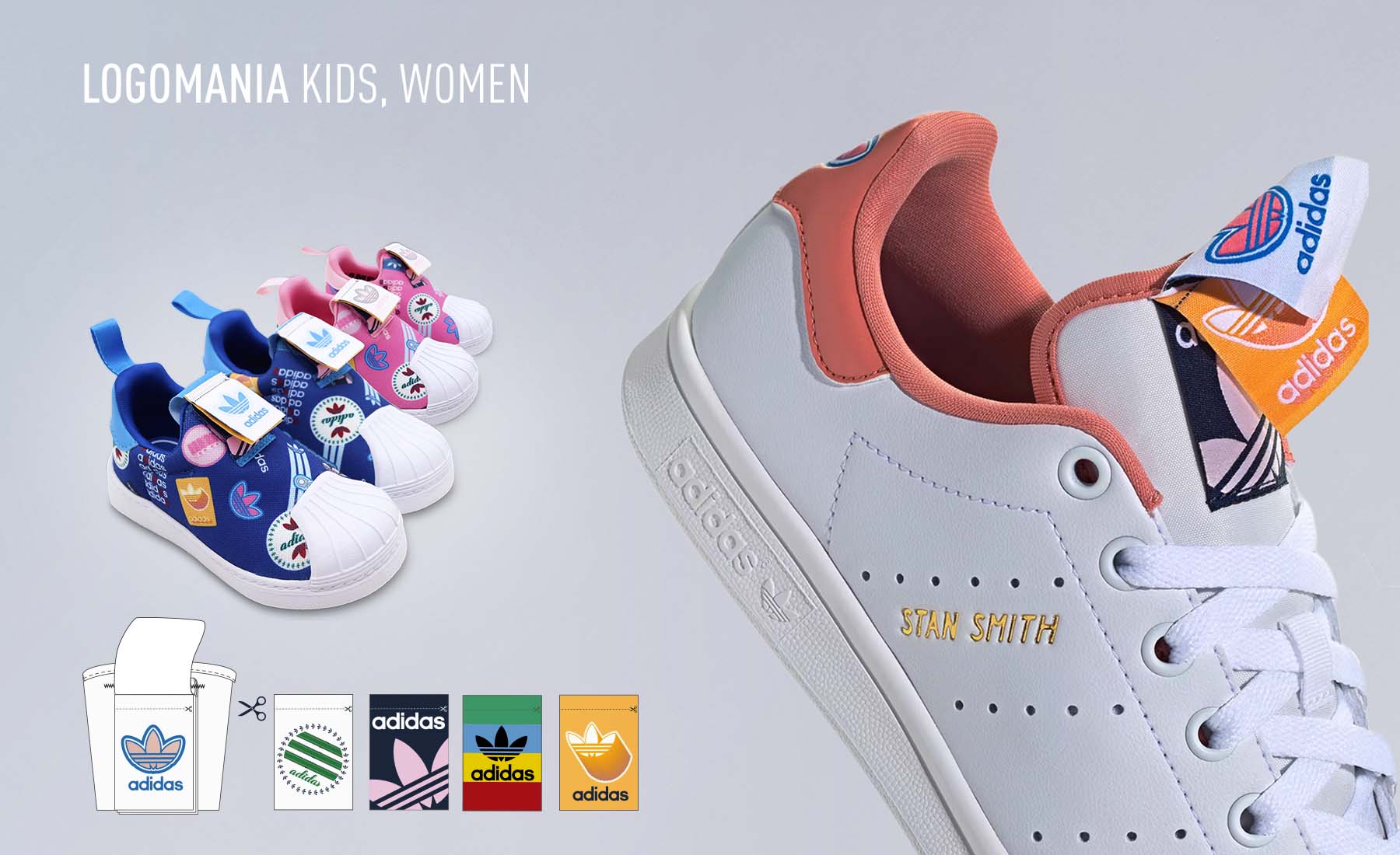 For the SS24 Logomania Pack, I designed a bold concept that celebrates the diversity of adidas branding by combining both heritage logos and newly developed, archive-inspired marks. The result is a playful, vibrant visual language that highlights the richness of the adidas identity.