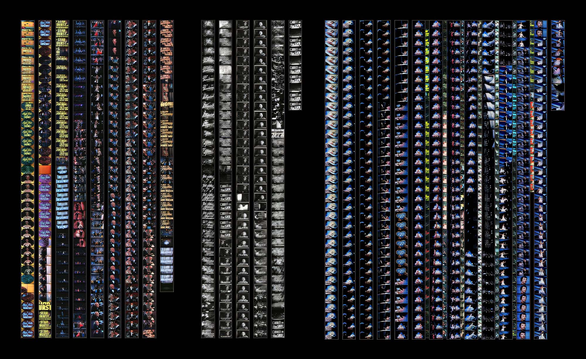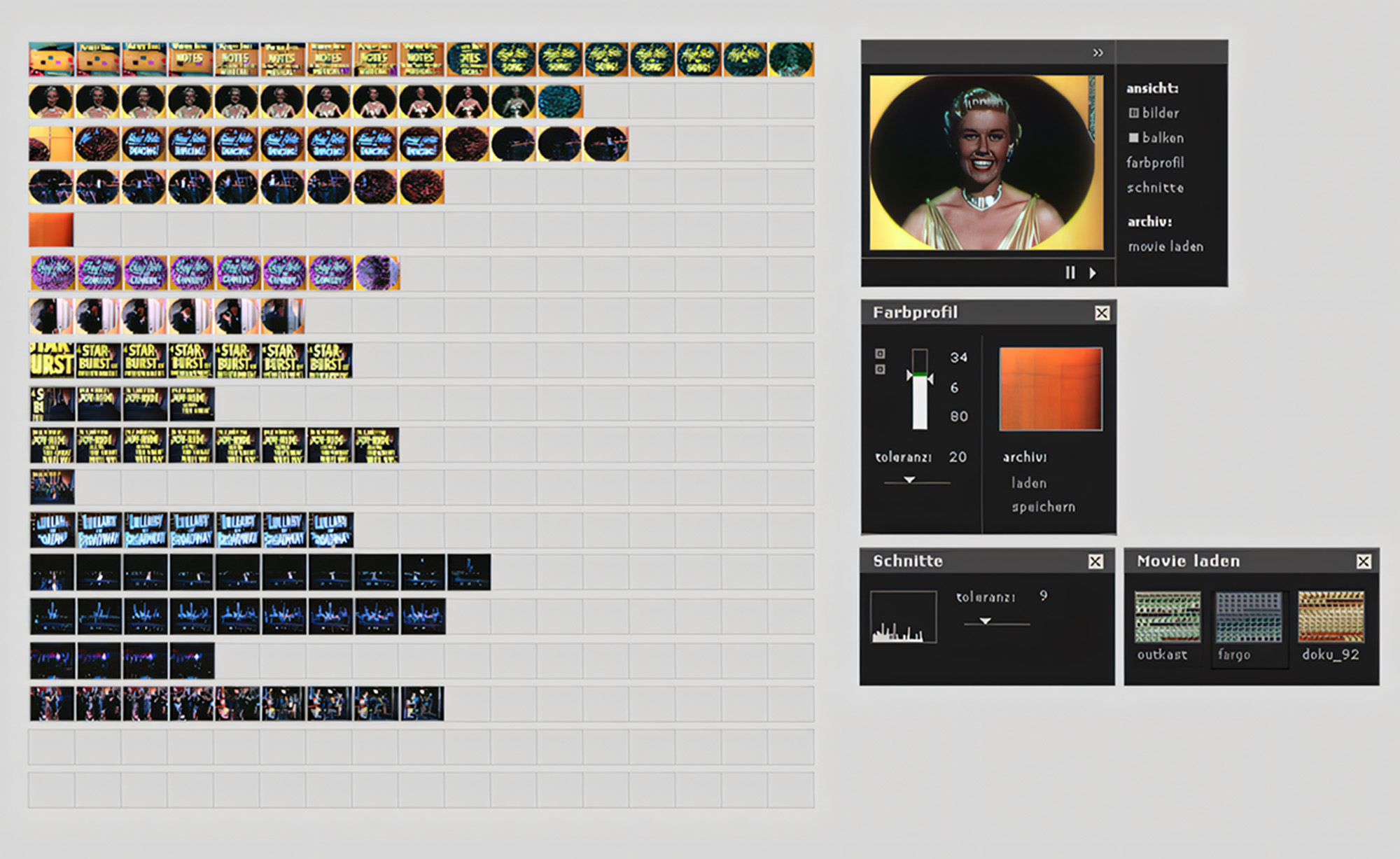 Movie Codes is an interactive tool that arranges frames of a movie in sequence and analyzes their colors to create simplified color profiles. These profiles can be used to sort, compare, and visualize film sequences in a structured way. As a small side project, I created large-format posters that assemble every frame of a film into a detailed mosaic, revealing its colors, pacing, and overall visual structure.