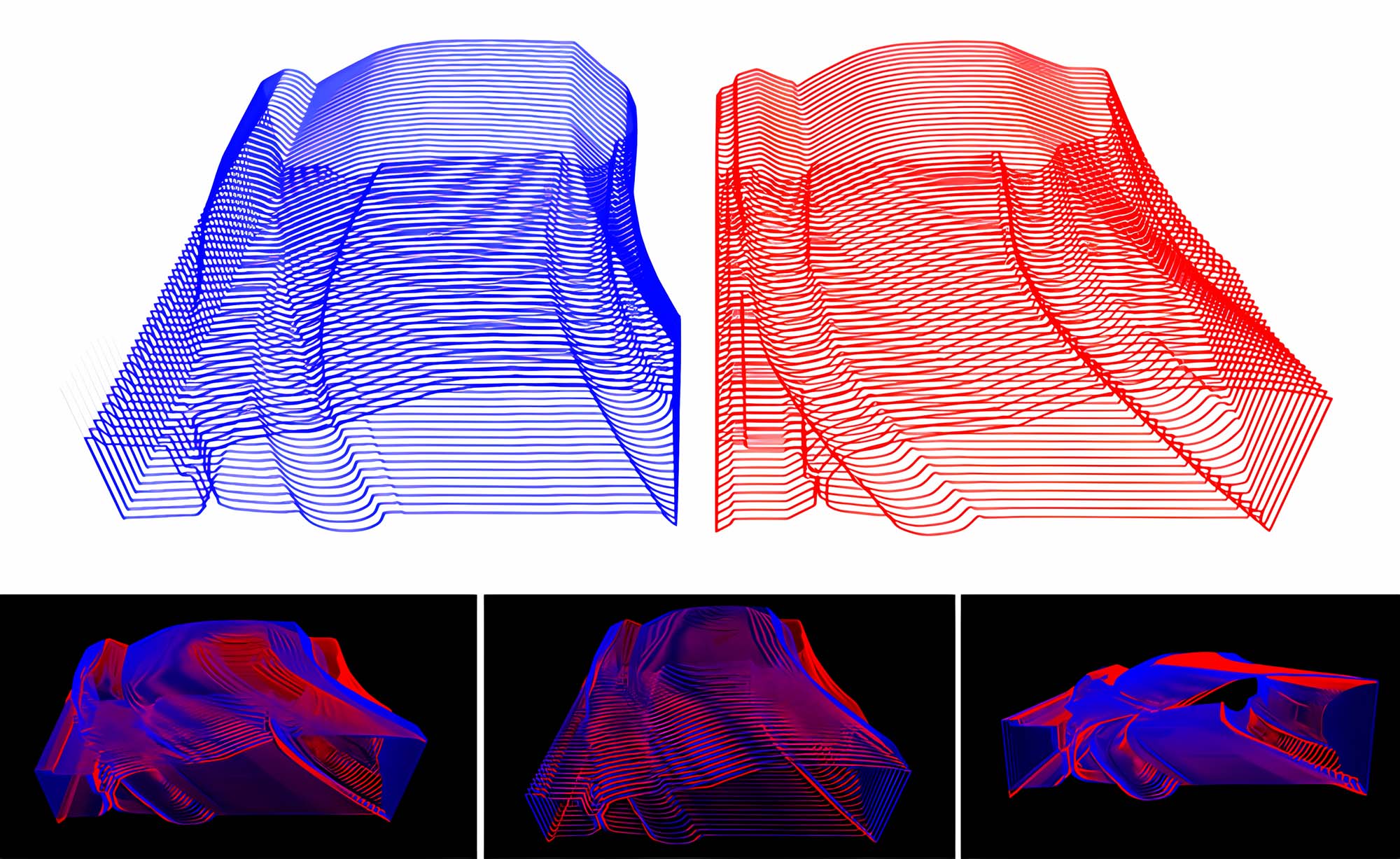 Recreating Movement is an experimental software tool for analyzing short film sequences. Originally developed in 2005 as a diploma thesis, the application breaks down video into individual frames and arranges them sequentially within a 3D space. The result is a compelling, tube-like structure that freezes a span of cinematic time. The user can freely navigate through this sequence, exploring it from any angle within the 3D environment. An intuitive interface provides customizable settings and filters, creating a fascinating visual experience. The project serves as a design-driven exploration–offering new ways to experience film–and should be seen as a developing concept, not a finished product.