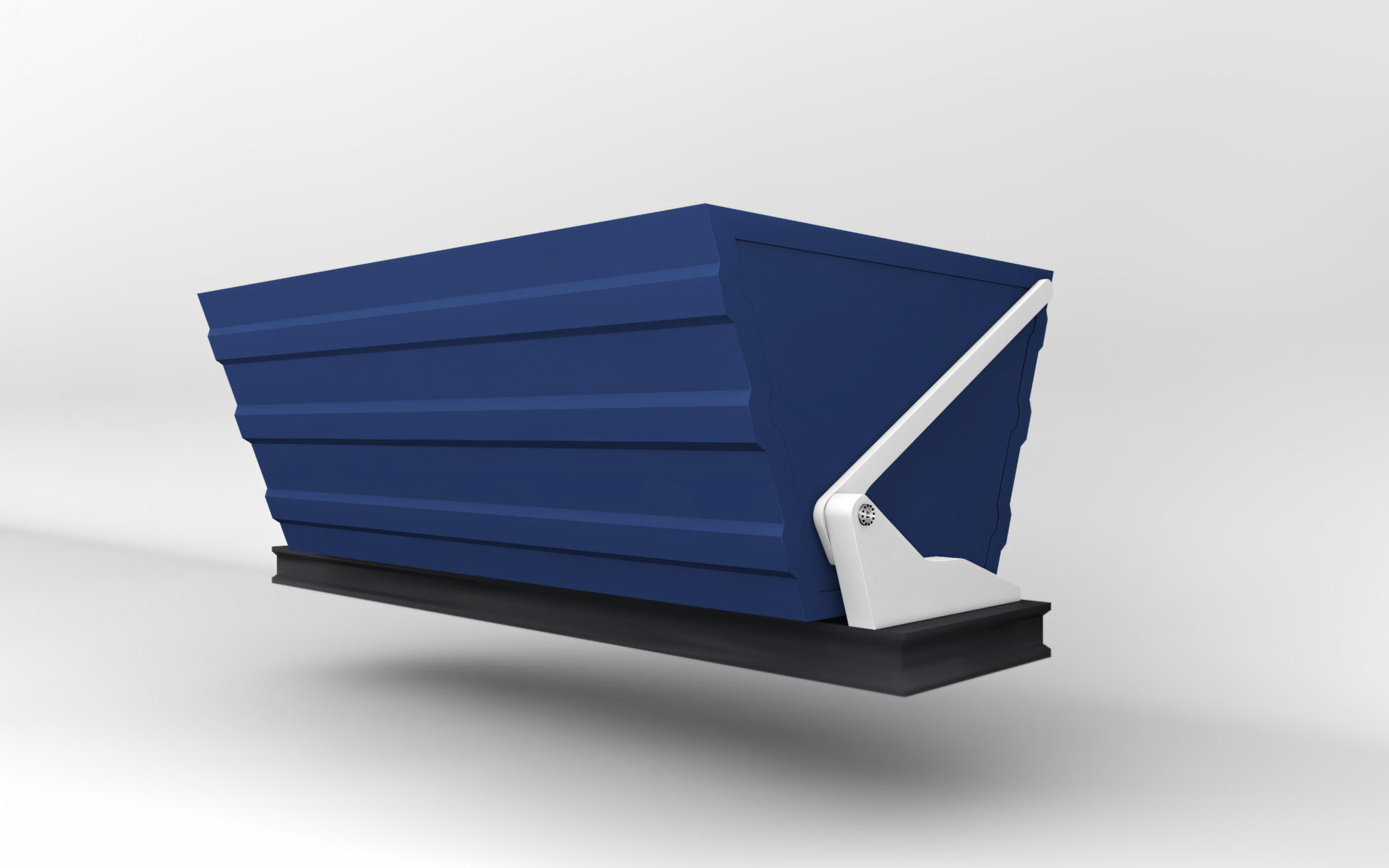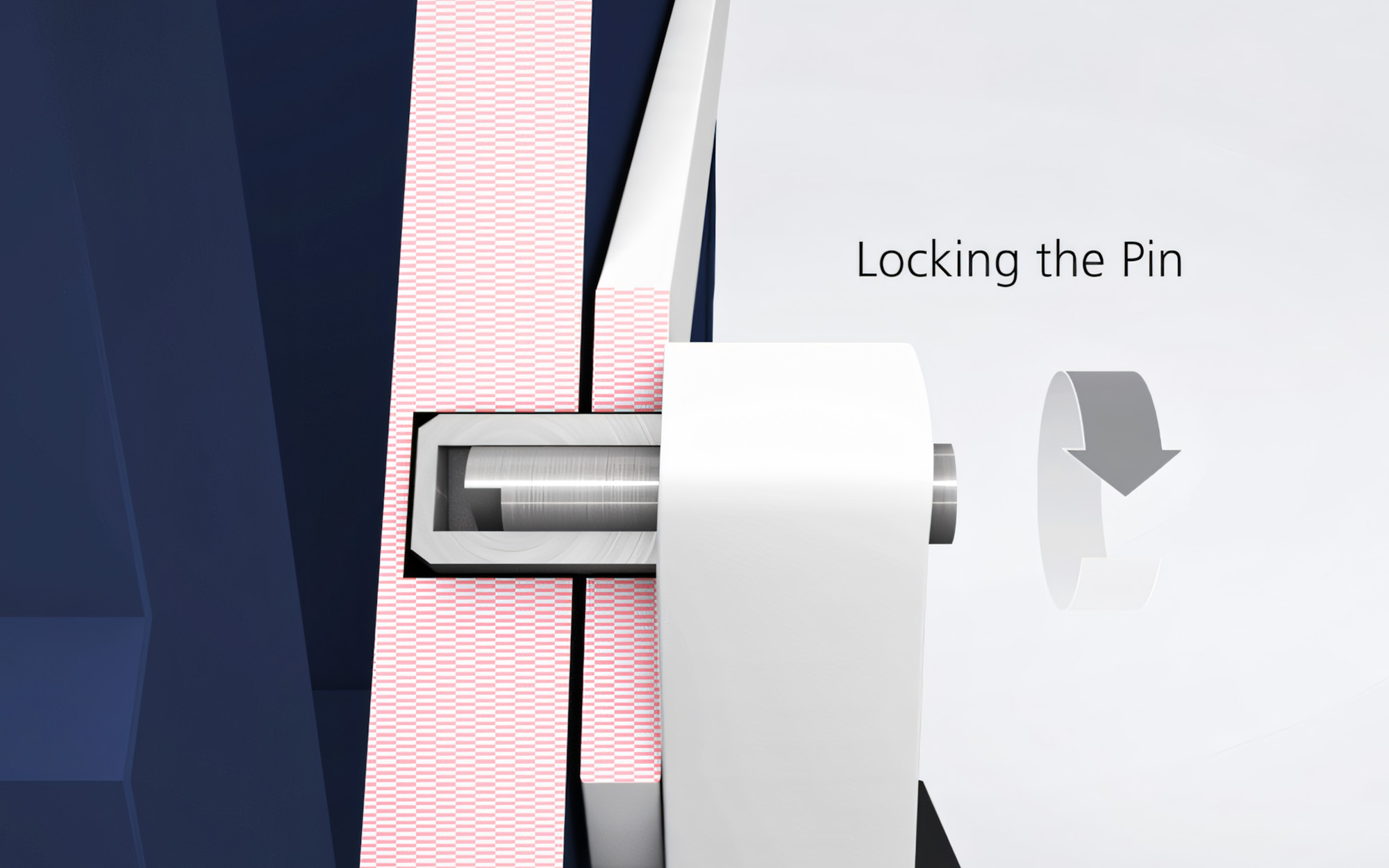 3D animation demonstrating the Wiggins Pin Lock System for securing industrial containers. The sequence shows each component and the locking process step-by-step, ending with the mechanism mounted on a full-size container for clear technical and marketing use.